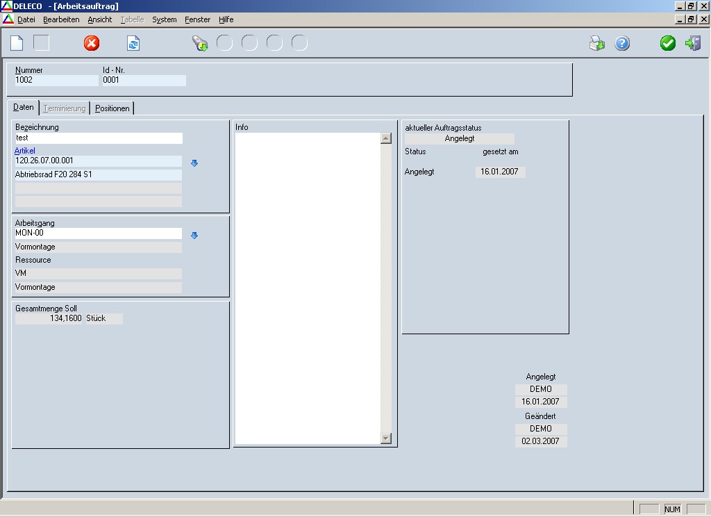 Das Modul "Arbeitsauftrag" ermöglicht das Anlegen und Verwalten von Arbeitsaufträgen. Ein Arbeitsauftrag ist eine Zusammenfassung gleicher Materialpositionen aus unterschiedlichen Fertigungsaufträgen. Der gedruckte Arbeitsauftrag kann z.B. als Zuschnittsliste in die Werkstatt gegeben werden.