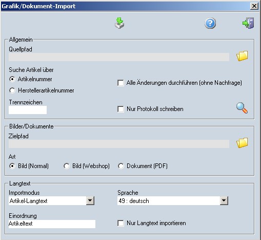 Das Importtool ermöglicht den Import von Bildern und Texten ins DELECO und gleichzeitige Zuordnung zu Artikelstammdaten. Dabei können Texte in verschiedenen Sprachen übernommen werden. Es gibt verschiedene Konfigurationen für den Import, die im nächsten Abschnitt genauer beschrieben werden.