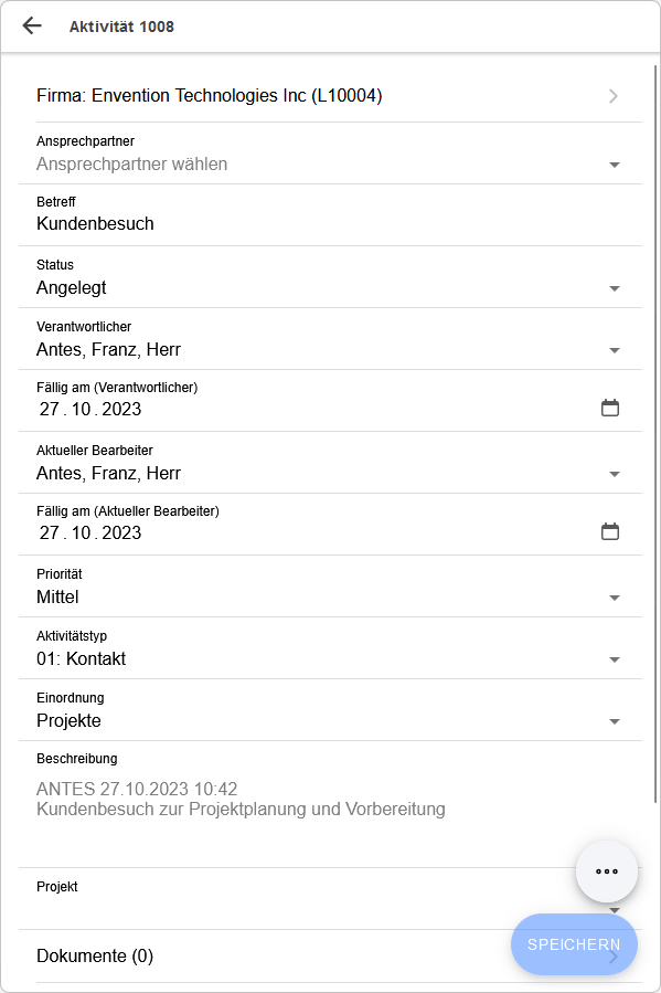 In der Detailansicht einer Aktivität können Sie folgende Informationen zur Aktivität einsehen und bearbeiten: