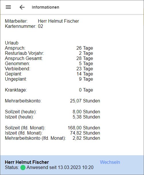 Hinweis: Die "Istzeit (lfd. Monat)" wird aus den kumulierten Monatsdaten ermittelt und ist nur aktuell, wenn die Kumulierung täglich ausgeführt wird.