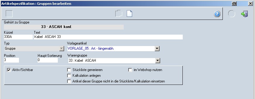 Abb. Artikelspezifikator - Gruppen bearbeiten