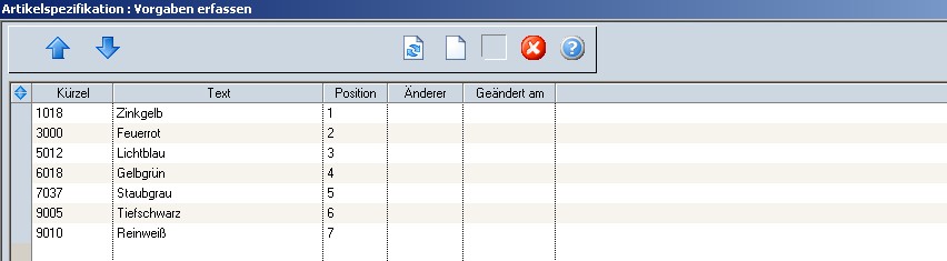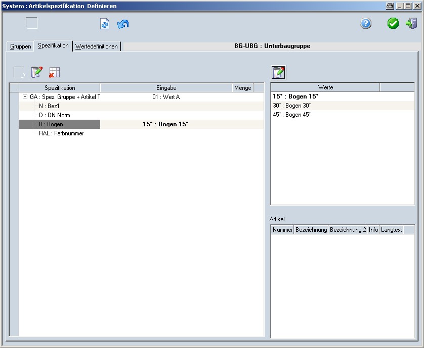 Beim Spezifikationstyp "Gruppe+Artikel" können mehrere Werte mit der gleichen Gruppe angelegt werden.