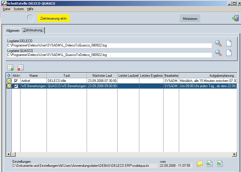 Hier können einzelne Tasks angelegt und gelöscht werden. Diese entsprechen den Datenarten auf dem Reiter "Allgemein". Die angelegten Aufgaben sind in der Tabelle sichtbar.