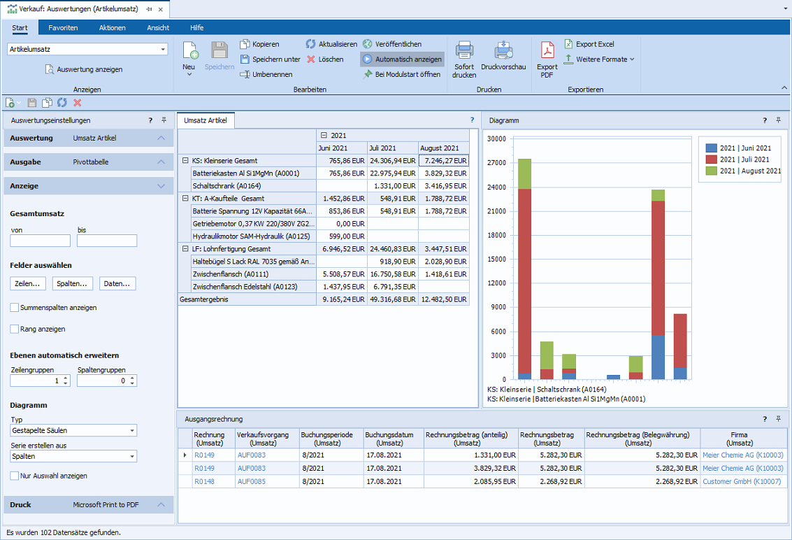 Abb.: Auswertung "Umsatz Artikel" im Verkauf