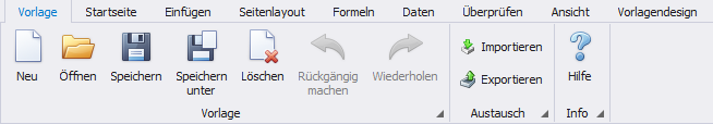 VorlagenverwaltungDie Vorlagenverwaltung erfolgt im Menü auf der Registerkarte "Vorlage".
