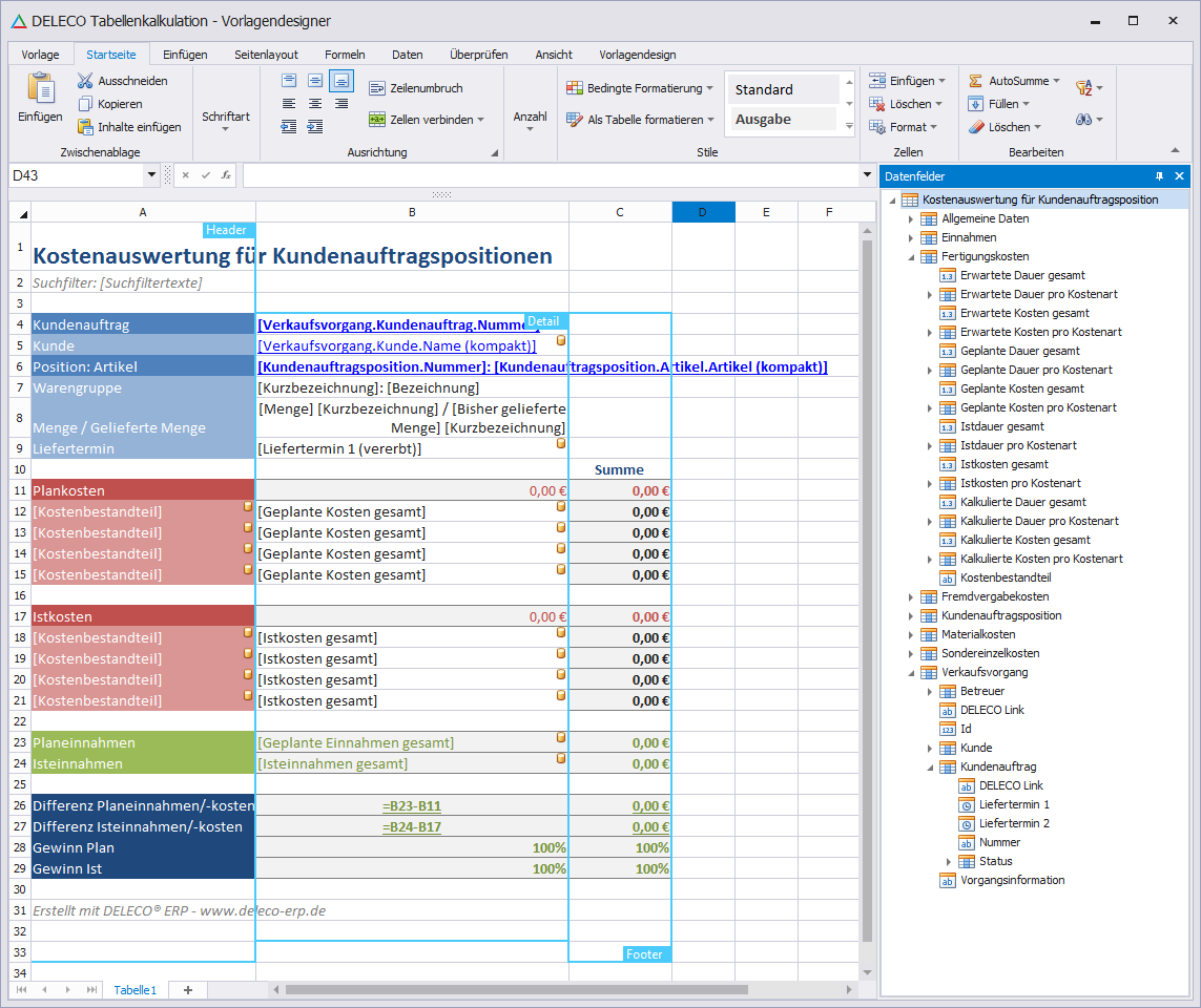 Abb.: Vorlagendesigner für Tabellenkalkulation