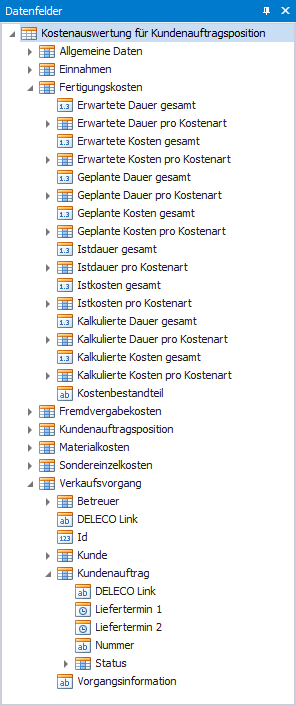 In diesem Fenster werden die modulspezifischen Datenfelder angezeigt, welche in einer Baumstruktur angeordnet sind. Der jeweilige Typ des Datenfeldes ist anhand des Symbols erkennbar.