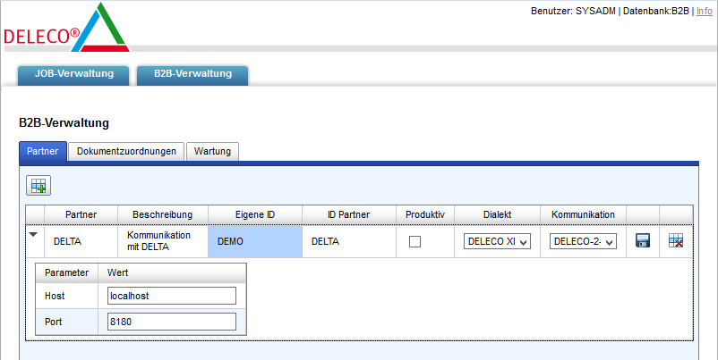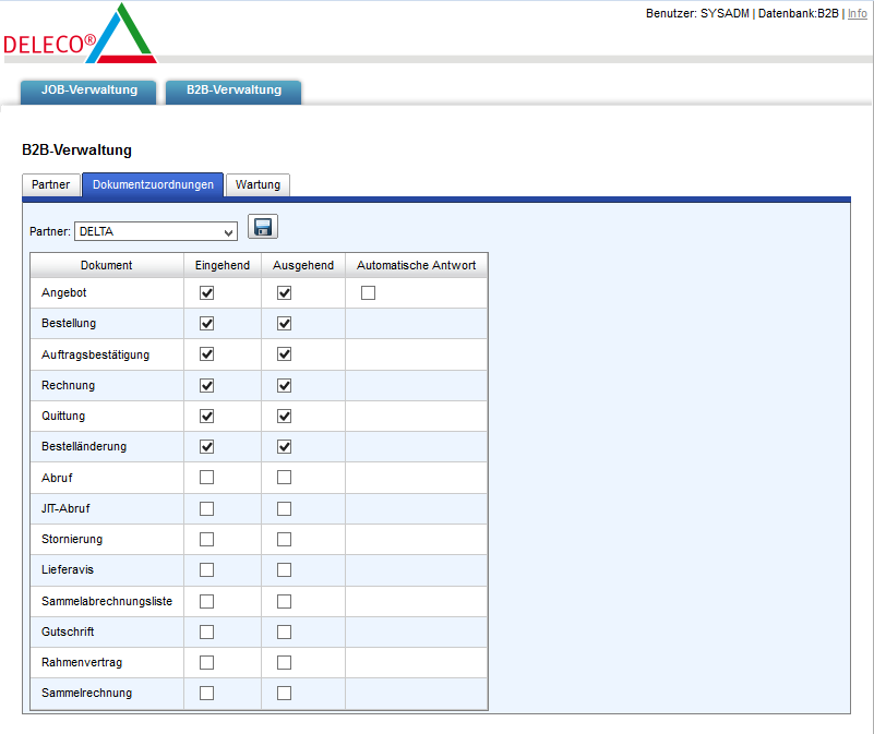•Auswahl des Partners und Festlegung, welche Dokumente ein- und ausgehend zugelassen sind