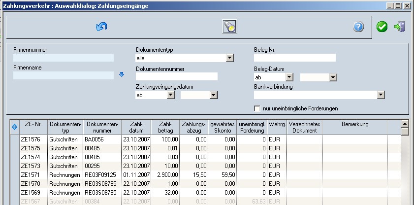Abb. Zahlungseingänge suchen