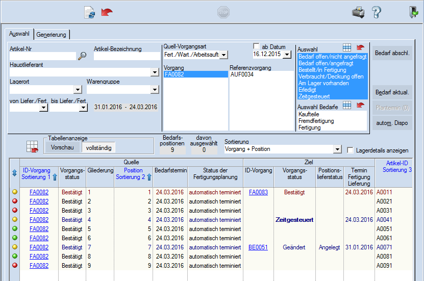 Abb. Disposition - Bedarfsdeckungsvorschläge aus Vorgang