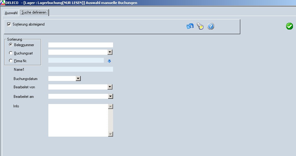 Ist die Buchungsnummer bekannt, kann diese direkt in das Feld eingetragen werden. Mit Hilfe der Suchschaltfläche kann eine durchgeführte manuelle Buchung gesucht werden.