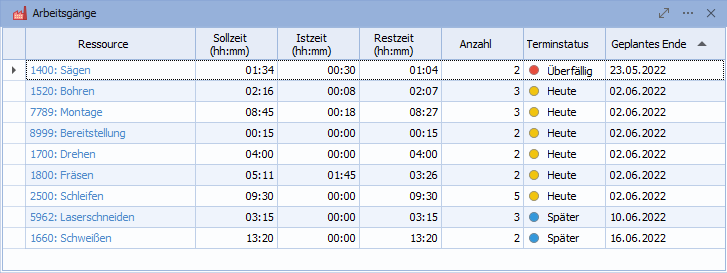 Abb.: Gruppierung nach Ressource und Status der Arbeitsgänge