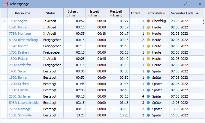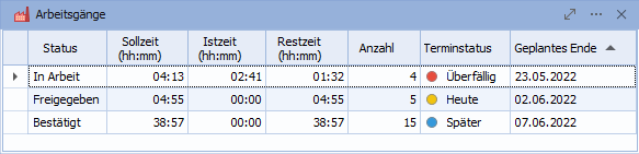 Abb.: Gruppierung nach Status der Arbeitsgänge