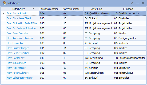 Zugehörige Auswertung: Mitarbeiterliste als Tabelle