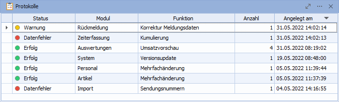 Benötigtes Recht: Es werden Ihnen alle Protokolle im Widget angezeigt, für die Sie das Nutzerrecht der zugehörigen Protokollfunktion besitzen.