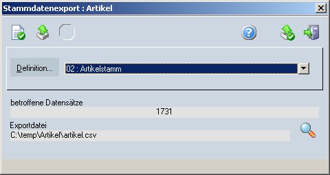 Bevor eine Datenausgabe erfolgen kann, muss eine Exportdefinition aus der Combobox ausgewählt werden.