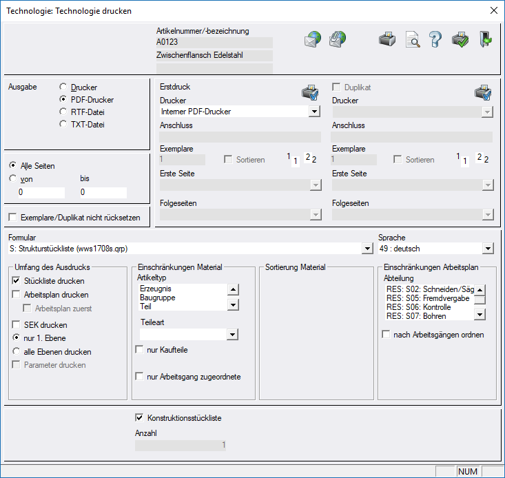 Es kann nur die erste oder alle Ebenen der Stückliste gedruckt werden.