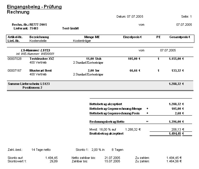 Weiterhin ist der Druck von Belastungsanzeigen Menge bzw. Preis möglich. Diese werden in "Rechnungsform" erstellt und können dem Lieferanten zugestellt werden. |