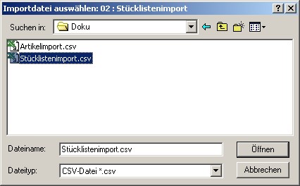 einfacher Stücklistenimport (.CSV oder .TXT) |