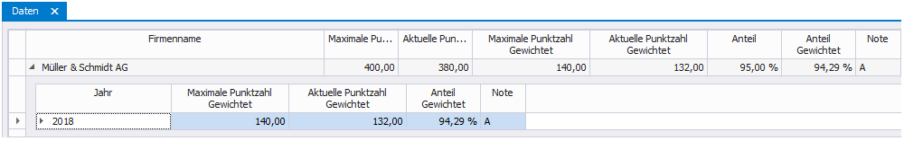 Lieferantenbewertung durchführenWählen Sie die Schaltfläche "Auswertung anzeigen" im Menüband auf der Registerkarte "Start", um die Lieferantenbewertung zu erstellen. Die Auswertung wir anschließend auf der Registerkarte "Daten" angezeigt.