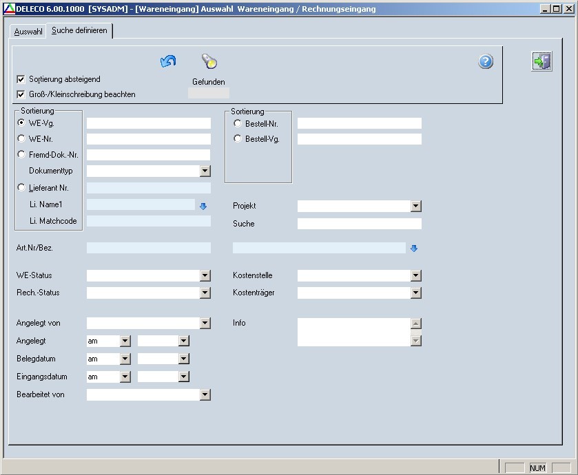 Soll ein vorhandener Wareneingang bzw. eine Retour angezeigt werden, kann in das Feld "Wareneingang" die Nummer eingetragen werden.