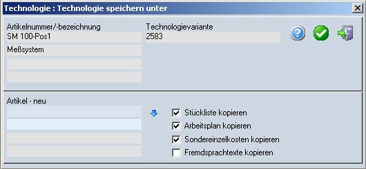 Weiterhin können gültige Technologievarianten eines eventuell vorhandenen Vorlageartikels übernommen werden.