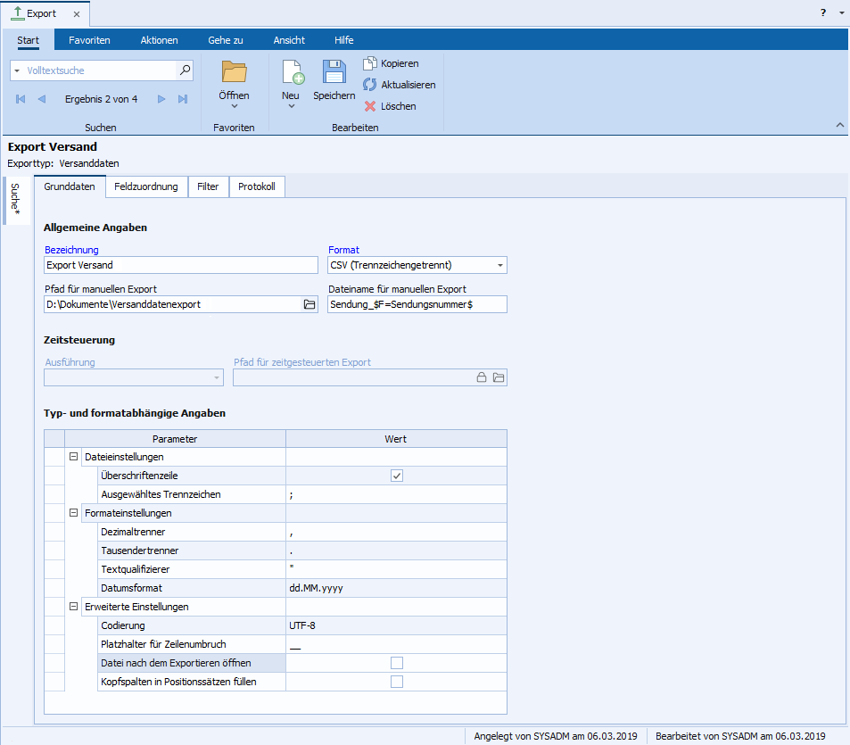 Aufruf: Modulgruppe Import/Export - Modul Export