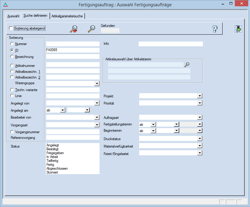 Ist keine Einschränkung getroffen, so werden auch frei angelegte Fertigungsaufträge gefunden.