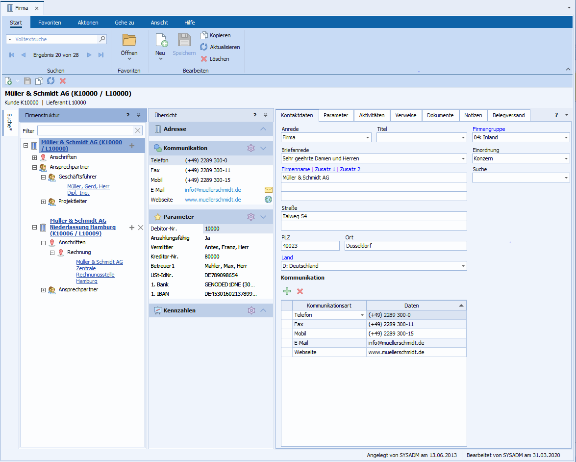 Anlegen und Bearbeiten von Firmen, Ansprechpartnern und Anschriften