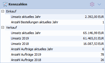 Die Auswahl der Kennzahlen kann im Konfigurationsdialog individuell eingestellt werden, welcher über das Zahnrad-Symbol erreichbar ist.