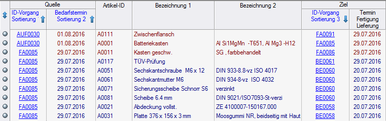 Abb.: Tabelle Disposition: Vorgangsbezogen (Mehrfachsortierung)
