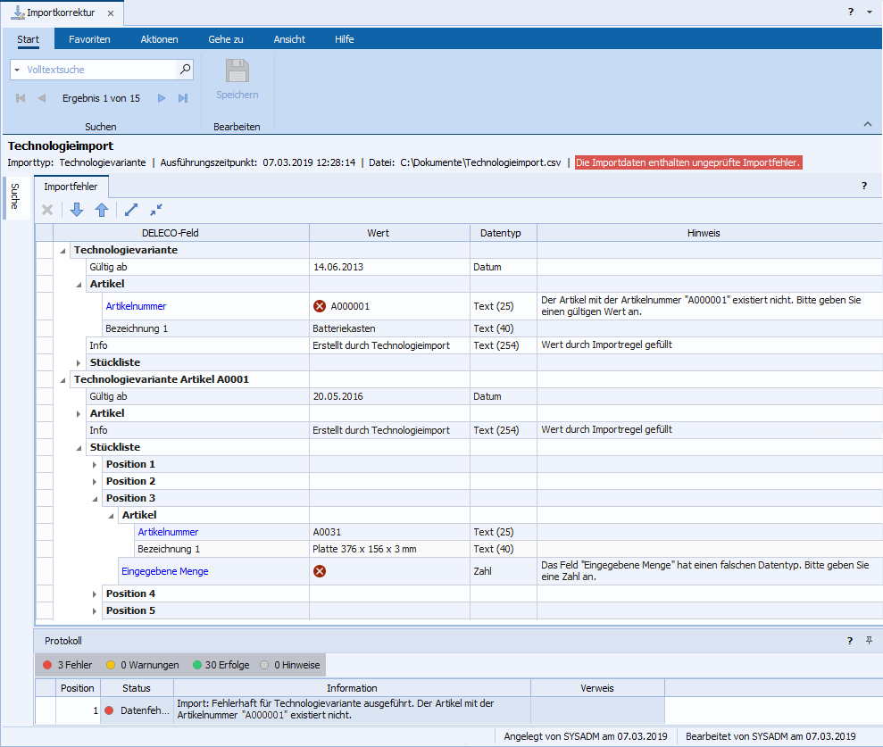 Aufruf: Modulgruppe Import/Export - Modul Importkorrektur