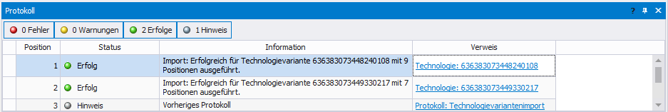 Für jeden Importlauf wird ein neues Protokoll erstellt, welches auch im Modul "Protokolle" und der betreffenden Importkonfiguration abrufbar ist. Das Protokoll enthält einen Verweis auf das vorherige Protokoll, sofern es sich nicht um das Protokoll des ursprünglichen Imports handelt, zudem der Importlauf erstellt wurde.