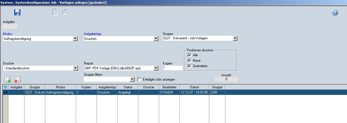 Aufruf: Bereich Einstellungen - Systemkonfiguration - Menü System - Menüpunkt Job-Vorlagen...