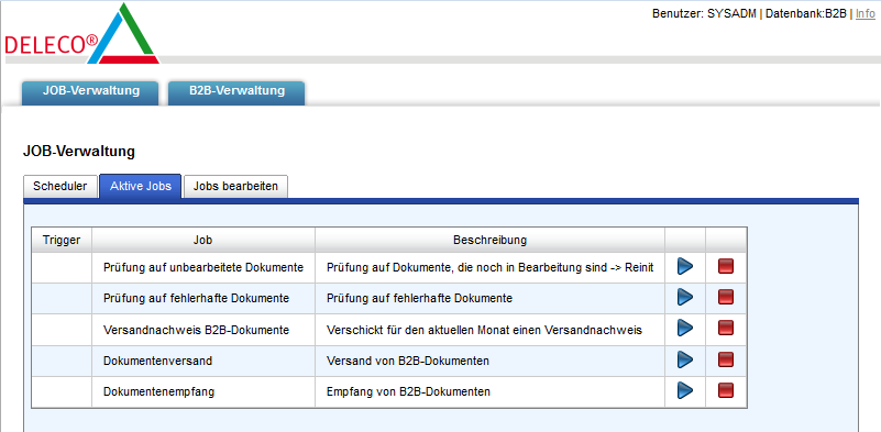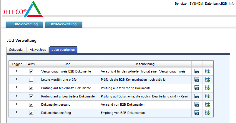 Es werden alle aktiven Jobs sowie die zugehörigen Trigger angezeigt.