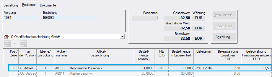 Kein Wareneingang vorhanden: Ursprung: Bestellung