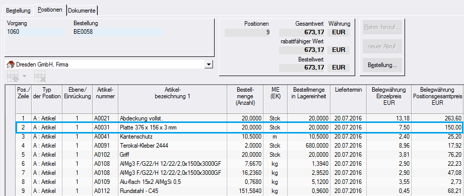Abfolge Datumsermittlung siehe Zeile "Wareneingang"