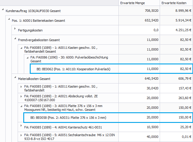 Die erwarteten Projektaufgabekosten sind mit den Plankosten der Projektaufgabe identisch.
