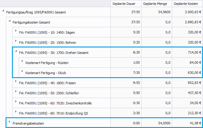 Abb.: Geplante Kosten für Fremdvergabe und Fertigung