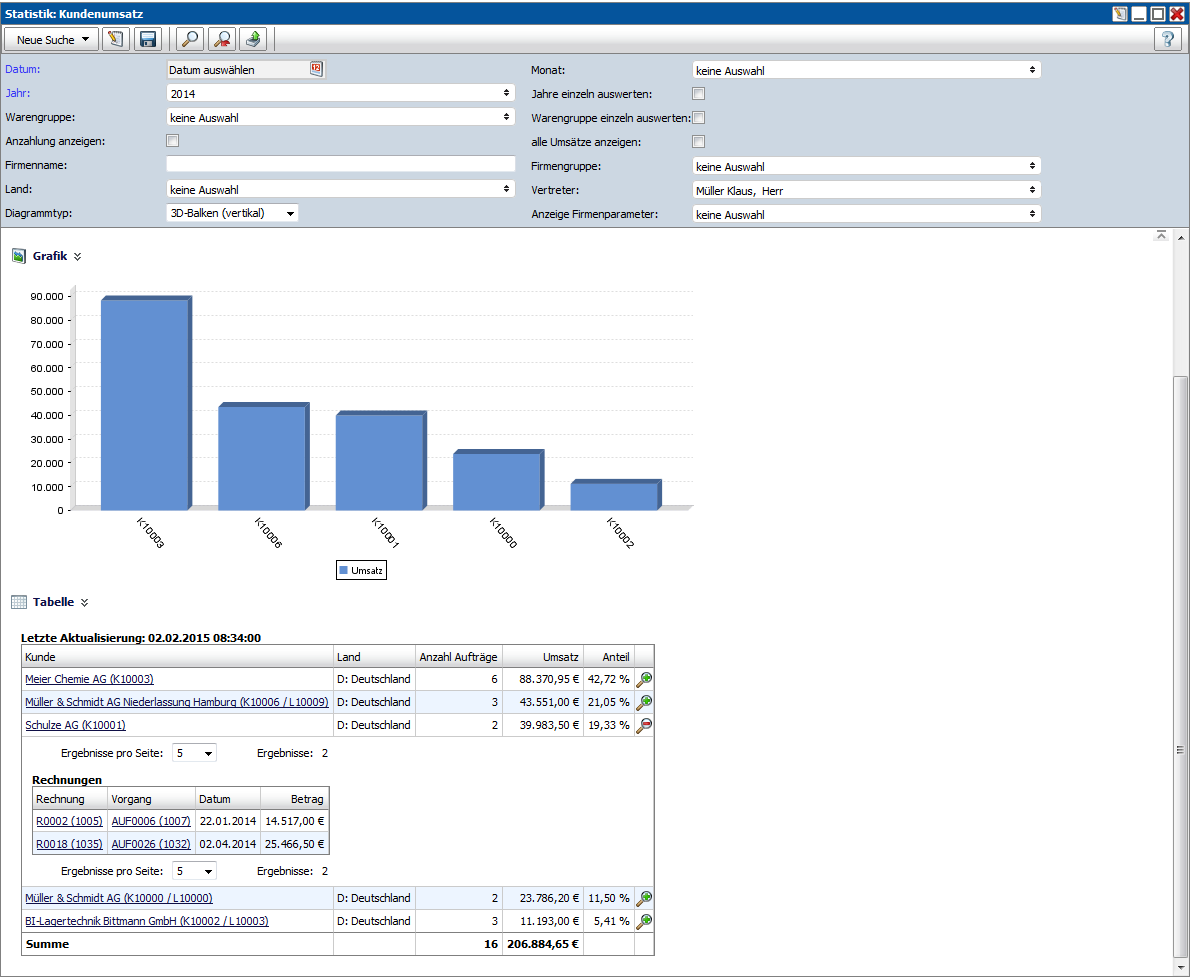 Wird dieser Filter aktiviert, werden alle Umsätze für jeden einzelnen Kunden im gewählten Zeitraum angezeigt.