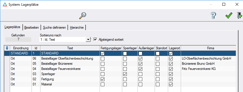 Damit ist die Verwaltung von Standorten der eigenen Firma möglich. Im Gegensatz zu Außenlagern werden Standorte in der Disposition auch im Standard mit berücksichtigt.