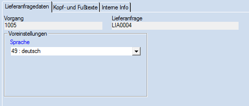 Über die Schaltfläche "Daten" wird der Dialog zur Erfassung der Lieferanfragedaten aufgerufen.
