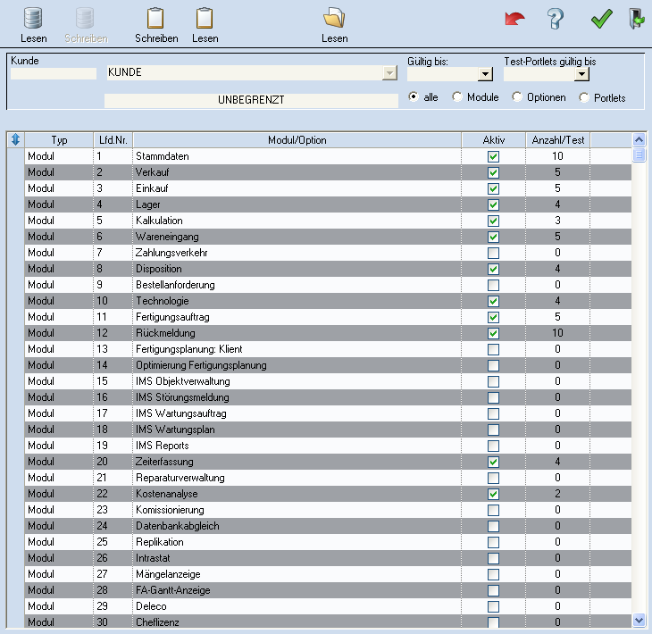 Aufruf: Modulnavigation - Bereich Einstellungen - Modulgruppe System - Eintrag Lizenzen
