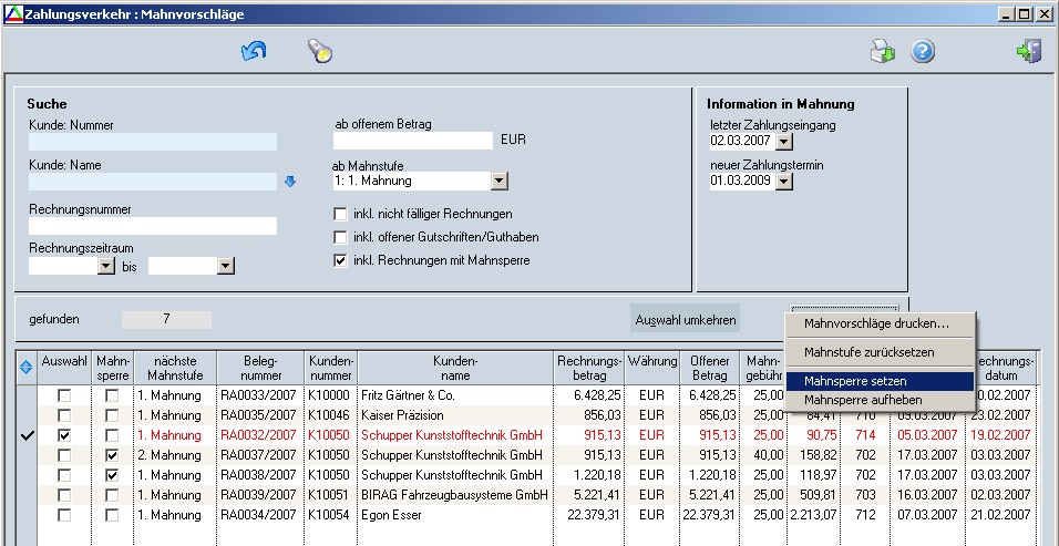 Mahnsperre setzen/aufheben |