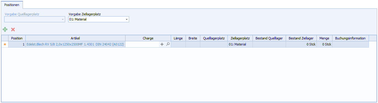Die Quelllagerplatz-Spalte enthält nur Lagerplätze, auf denen der zu buchende Artikel Bestand hat.