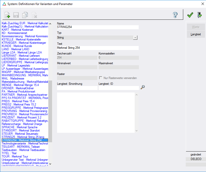 Unter Merkmalen werden sowohl Parameter für Firmen und Artikel als auch artikelspezifische Eigenschaften (z.B. Größe, Farbe, Material,....) verstanden.
