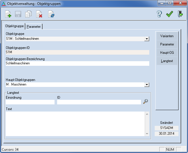 Aufruf: Menü "System" - Objektgruppe/Parameter