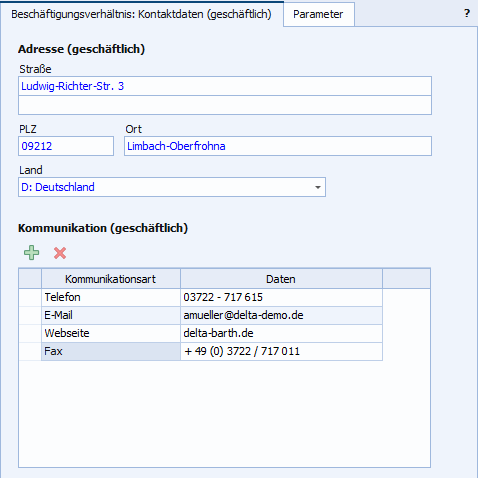 Abb.: Registerkarte "Beschäftigungsverhältnis: Kontaktdaten (geschäftlich)"