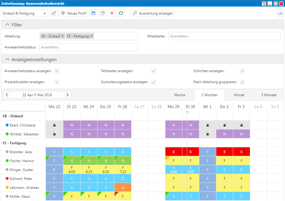 Hinweis: Profile, welche im Modul "Auswertungen" der Modulgruppe "Zeiterfassung" mit der Kategorie "Anwesenheitsübersicht" erstellt wurden, stehen hier ebenfalls zu Verfügung.