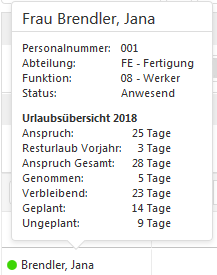 Abb.: Tooltip des Mitarbeiters mit Urlaubsinformationen